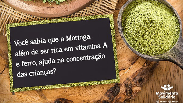 É essa planta que o Movimento Solidário está introduzindo nas comunidades de Belágua (MA), cidade atendida pelo programa desde 2015. Além de se tornar mais uma fonte de nutrição de qualidade, a Moringa tem a capacidade de purificar a água. Já foram plantadas cerca de 600 mudas e a expectativa é as folhas possam ser usadas como alimentação em menos de um ano. A árvore cresce muito rápido e pode chegar a até 12 metros de altura. Seus galhos são carregados de pequenas folhinhas verdes incrivelmente nutritivas. As vagens verdes, flores e sementes têm rico valor alimentar. Ou seja, todas as partes são utilizáveis.