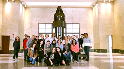 Fundada em 1925, ela encantou o grupo não apenas pelo seu grande e diverso acervo, mas também pela sensação de voltar no tempo. “Lembrei-me de quando trabalhava no centro, minhas pesquisas escolares eram aqui”, escreveu a associada Antonia Pinheiro no mural da biblioteca. A impressão foi compartilhada pelo resto do grupo, muitos se recordaram com carinho da época em que eram estudantes.