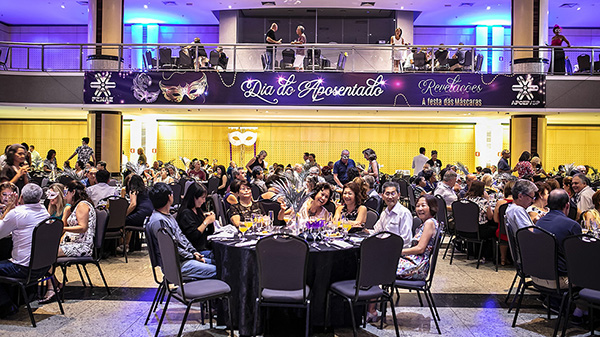 A APCEF/SP promoveu para os empregados da Caixa aposentados e seus convidados um evento especial em comemoração ao Dia do Aposentado. Revelações, a festa das máscaras aconteceu no domingo, 10, no Espaço Hakka e reuniu quase 500 pessoas.
