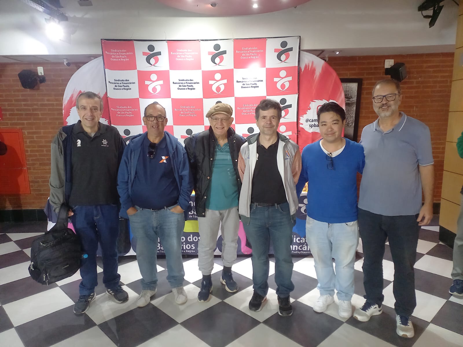 Xadrez – Os enxadristas da equipe da Apcef/SP Amauri Nogueira da Cruz, José Fernando Antunes, Wilton Yokomizo, Marcos Corrêa Santo, Valter San Martin Ribeiro e Wagner Maria Gangini Ferreira participaram, em 13 de setembro, do 6º Campeonato de Xadrez dos Bancários – Luiz Gushiken.