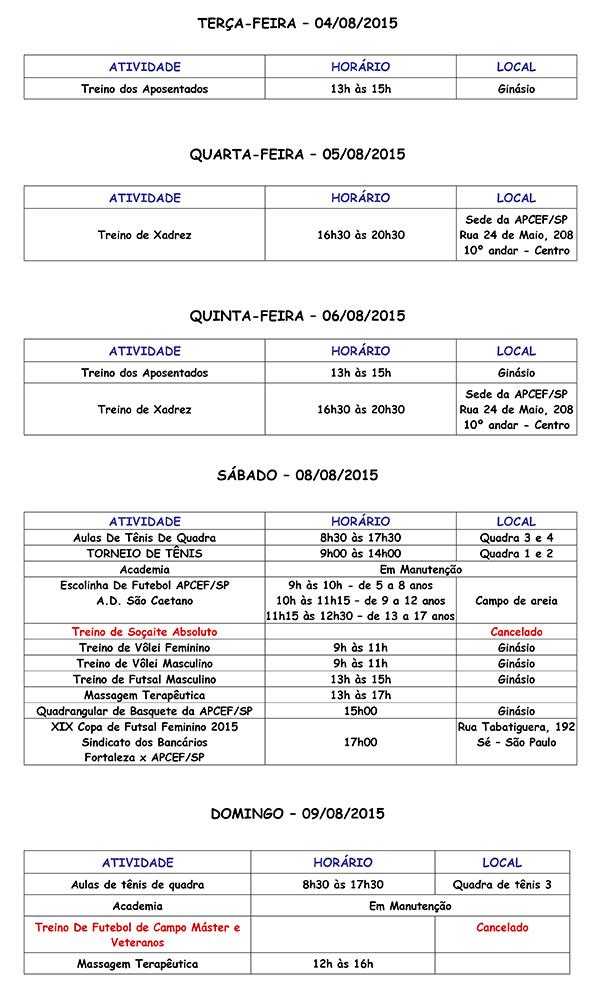 >> Clique aqui para verificar a programação até 9 de agosto em pdf ou veja a imagem abaixo: