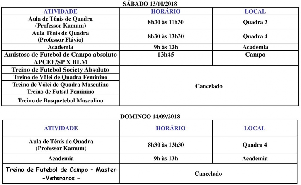 A programação esportiva no Centro Comunitário da APCEF é especialmente preparada, todas as semanas, para os associados. Confira as atividades programadas: