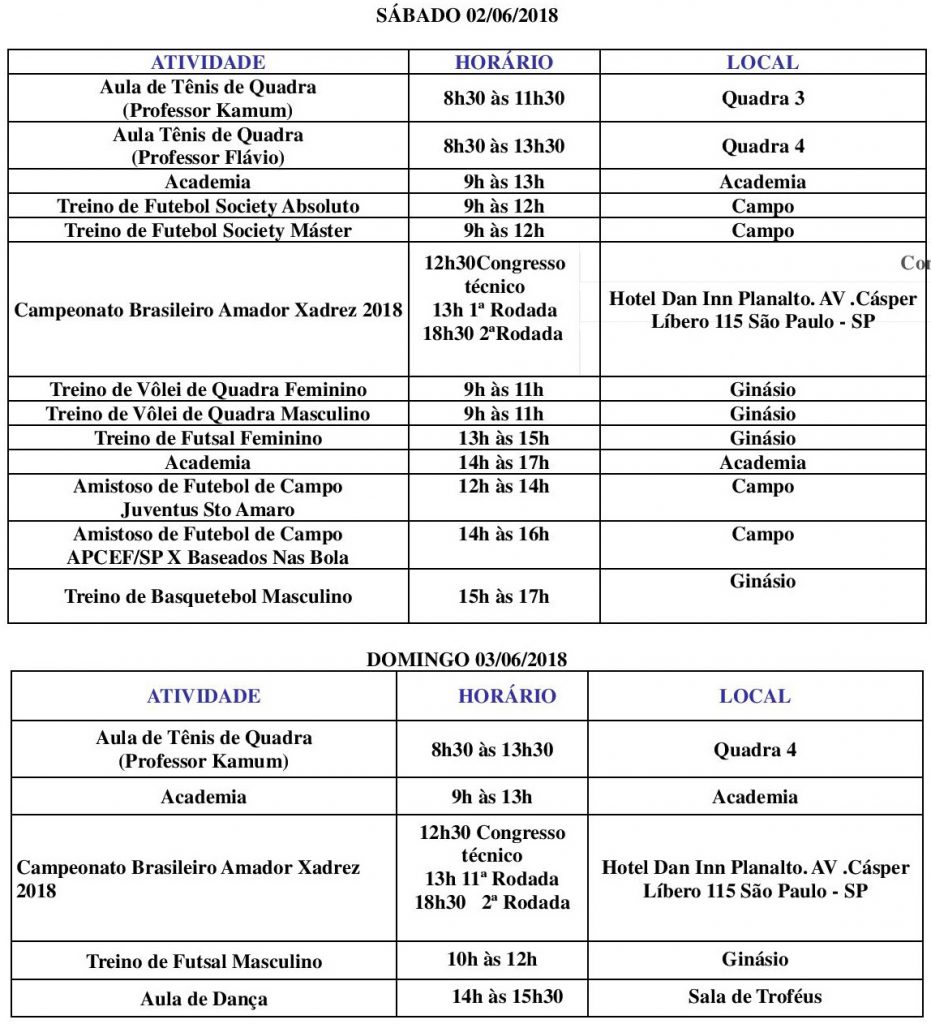 A programação esportiva no Centro Comunitário da APCEF é especialmente preparada, todas as semanas, para os associados. Confira as atividades programadas: