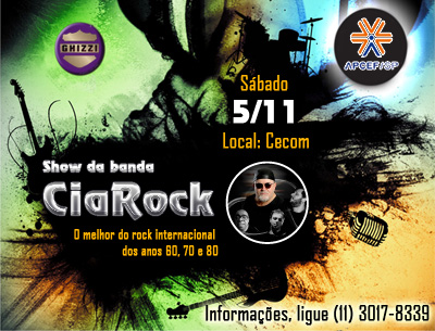 Com show, iluminação e decoração, ao som da banda Ghizzi & Cia Rock, que vai agitar a noite com os clássicos do rock’n roll e outras baladas dos anos 60 e 70. O repertório da banda traz Beatles, Elvis Presley, Rolling Stones, Santana e outros.