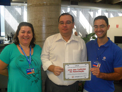 Na quinta-feira, 5 de abril, os representantes da APCEF Leonardo Quadros e Edvaldo Rodrigues, estiveram na agência Carapicuíba para a entrega do voucher das diárias de um fim de semana, com acompanhante, em uma das Colônias da entidade, ao associado Renato Cardoso Gomes, que indicou três novos associados e foi premiado.