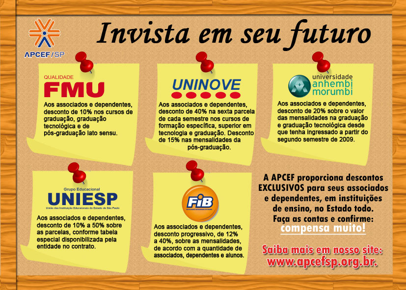 Página Convênios da APCEF na área da educação: invista em seu futuro! | APCEF/SP