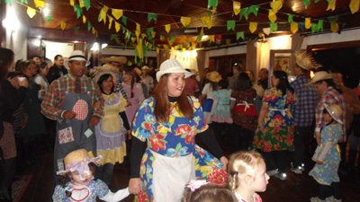 Em Campos do Jordão, o clima frio da Serra da Mantiqueira foi aquecido com a dança animada da quadrinha junina. Os hóspedes entraram na brincadeira da festa, caracterizaram-se com roupas e maquiagens, curtiram muito o arraiá no Hotel-Colônia da APCEF e saborearam as comidas e bebidas típicas.