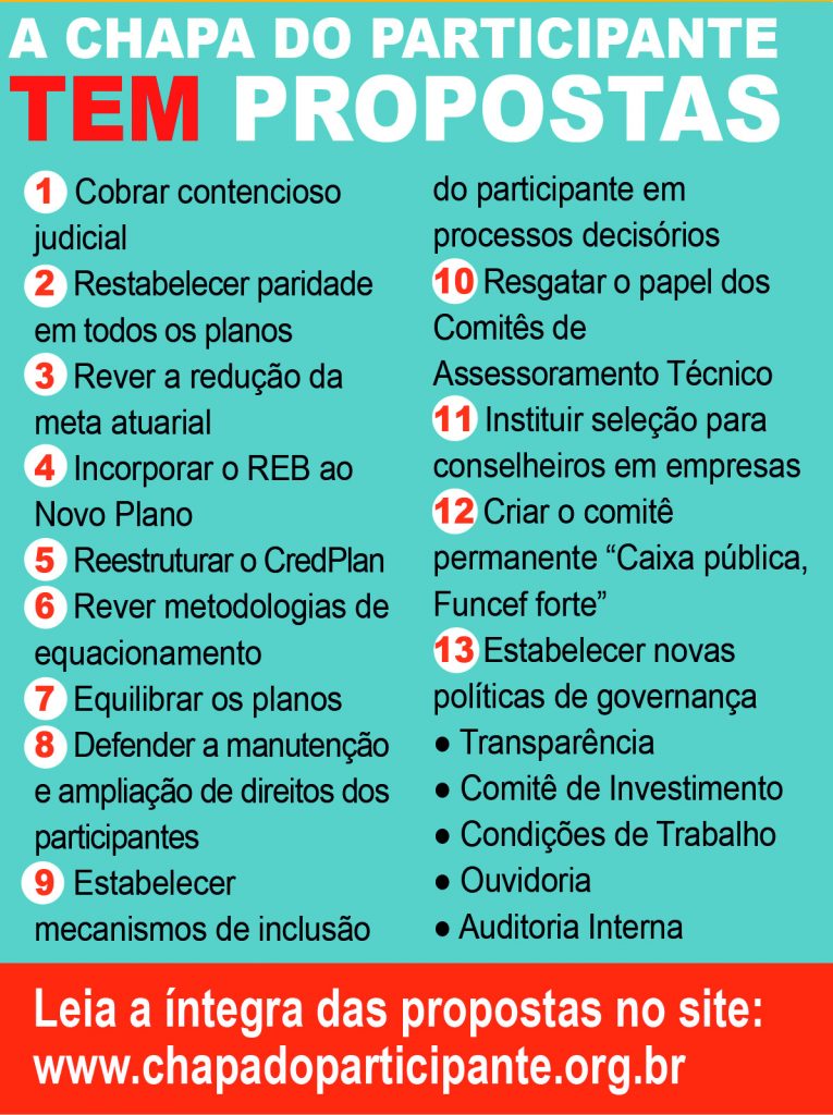 Acesse: www.chapadoparticipante.com.br, conheça todos os candidatos e as propostas apresentadas pela Chapa 3.