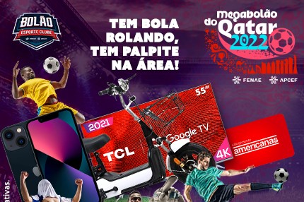 Ao final do Megabolão, os três primeiros palpiteiros do ranking vão ganhar prêmios incríveis! O primeiro lugar recebe uma moto elétrica; o segundo, um Iphone Mini e o terceiro colocado vai ganhar uma TV. E tem mais: além dessa premiação, em todos os jogos serão sorteados vouchers Americanas no valor de R$ 300 entre os acertadores do resultado de cada partida. Ou seja, ainda dá tempo de ativar seu cadastro na plataforma do Bolão Esporte Clube com seu Login Fenae (antigo Mundo Caixa) e participar! E então, é Argentina ou França? Bom palpite e boa sorte!