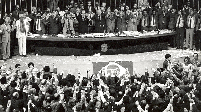 Após esse longo período, o povo ocupou as ruas com manifestações pelo fim da ditadura militar e pelas diretas já. Era preciso repactuar o Estado Brasileiro em todos os seus elementos: povo, território, poderes, instituições essenciais, os direitos e garantias fundamentais do cidadão, o sistema tributário, financeiro, previdenciário e outros elementos constitucionais.
