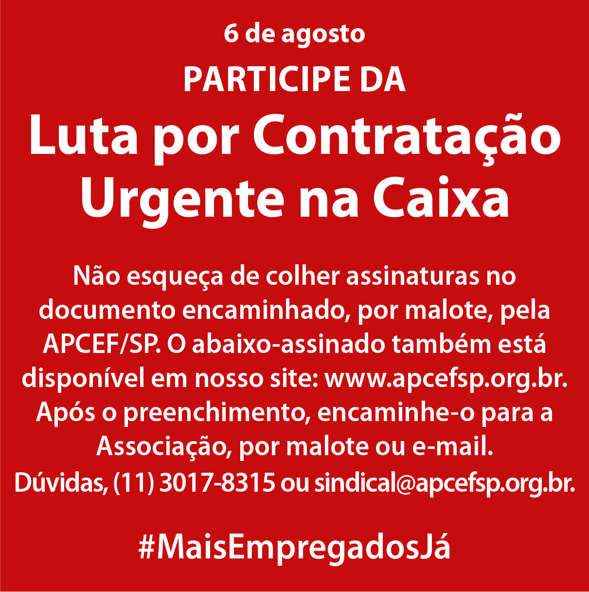 Página Abaixo-assinado por mais empregados na Caixa | APCEF/SP