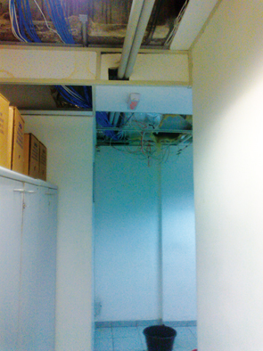 Em outros ambientes da unidade, há baldes pelo chão para conter vazamentos e a fiação fica “escandalosamente” à vista, colocando em risco a segurança de clientes e empregados.