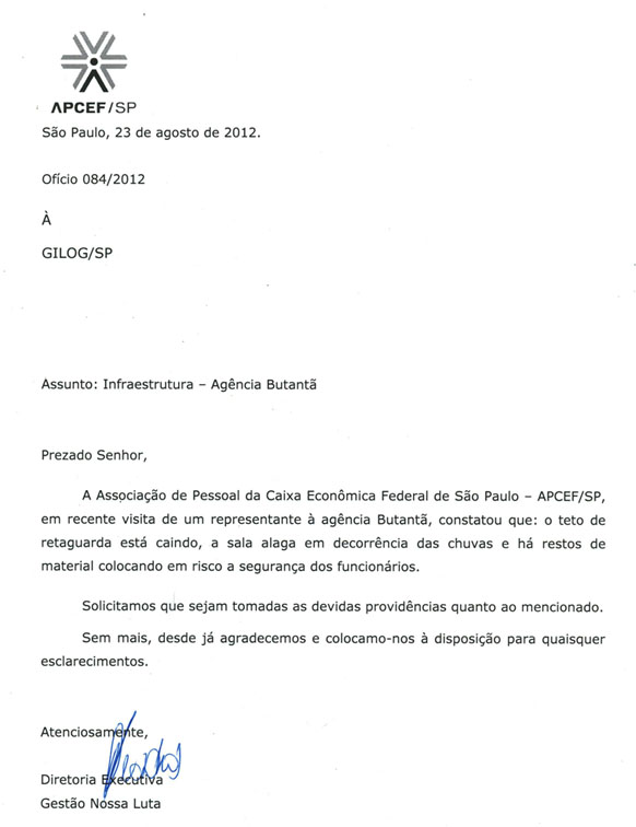 No dia 23, a diretoria da APCEF/SP encaminhou ofício à Gilog no qual solicitava providências urgentes em relação aos problemas constatados.