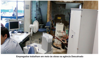 Uma reforma no prédio que abriga a agência Descalvado, no interior do Estado, está causando desconforto para empregados e clientes por causa de mau planejamento da obra pela Caixa.
