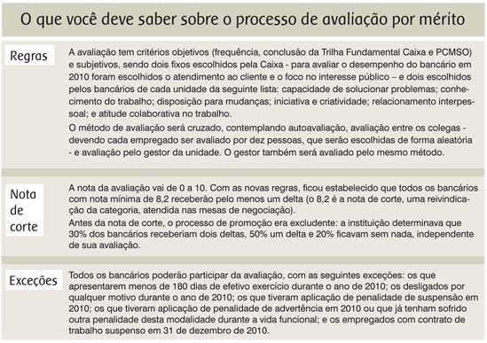 A avaliação por mérito deste ano cumprirá uma série de reivindicações dos empregados, apresentadas na Campanha Nacional Unificada 2010.