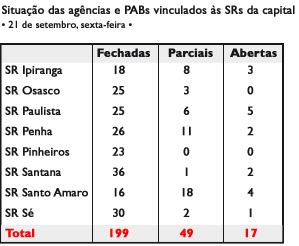 >> Consulte aqui o quadro completo* com a situação das agências, Postos de Atendimento Bancário (PABs) e áreas-meio de São Paulo.