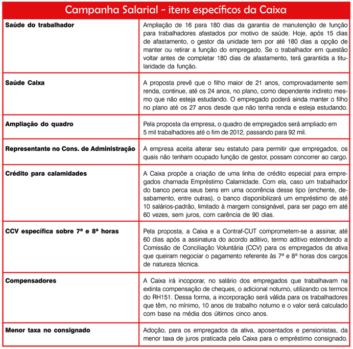 Confira, no quadro abaixo, outros itens conquistados pelos empregados na Campanha Salarial deste ano.