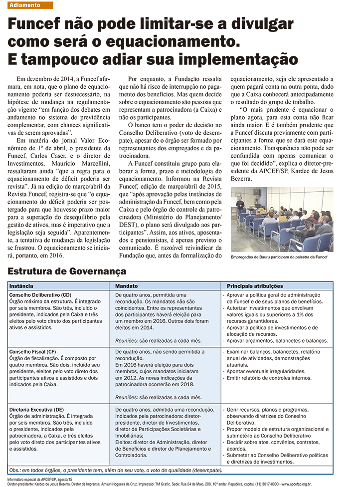 Página Jornal especial da Funcef - edição de agosto | APCEF/SP