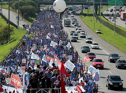 Cerca de 10 mil metalúrgicos do ABC ocuparam a Via Anchieta nesta quarta