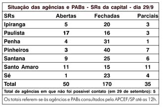 Nesta quarta-feira, dia 29, 205 agências ou PABs vinculados às SRs da capital estão fechados ou funcionando parcialmente.