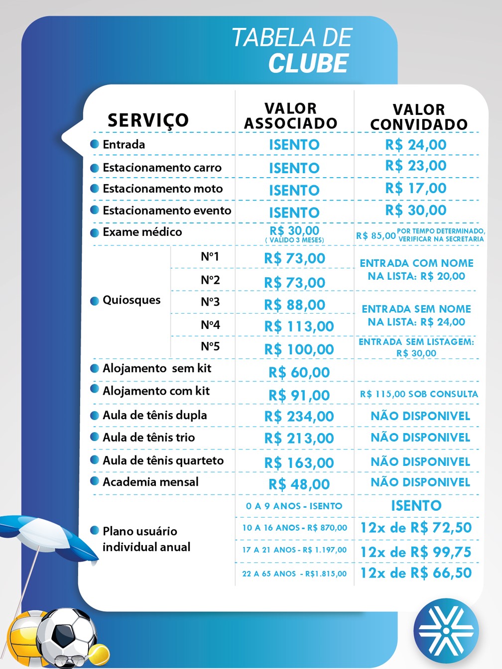∴ Clique aqui para saber sobre a utilização do clube por parentes de associados.