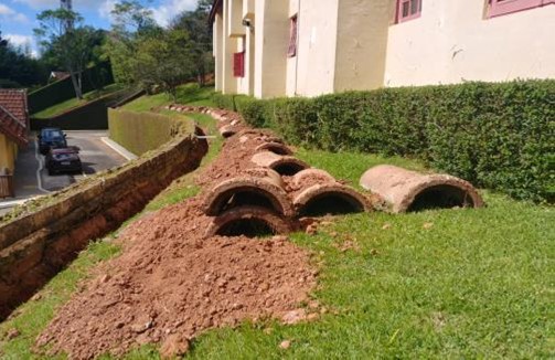 Para instalação do sistema de ar-condicionado e dos chuveiros a gás foram necessárias aberturas de valas para assentamento das tubulações em todos os blocos da Colônia.