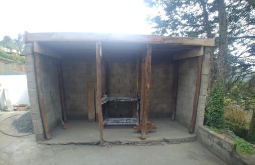 Para o bom funcionamento dos chuveiros a gás, foi preciso a aquisição de uma vaporizadora e a construção de um abrigo para o equipamento.