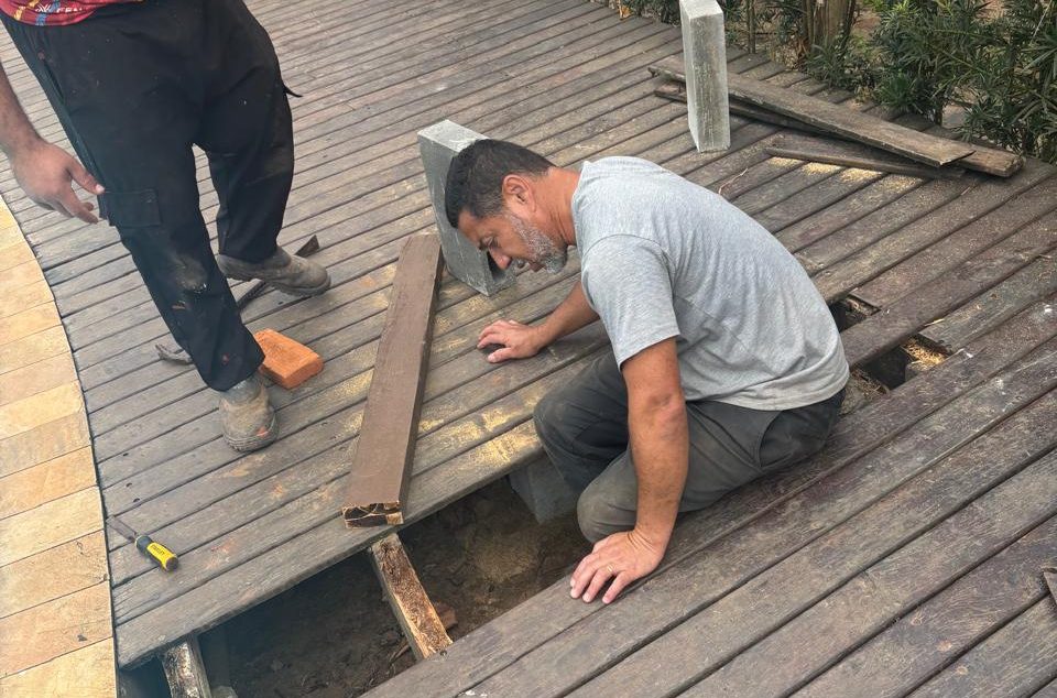 – Deck da piscina: substituição das vigas de madeira, trazendo mais segurança e durabilidade.